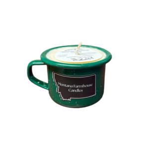 Experience the charm of Montana with our Enamelware Mug Candle by Montana Farmhouse Candles. Handcrafted in Montana, these 4 oz mug candles are crafted from natural soy wax and are available in 4 MT-inspired scents. Choose from blue, black, or green mugs to add a touch of rustic beauty to your space!